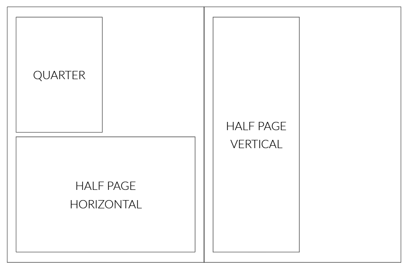 To ensure the highest quality ad, we prefer you provide artwork in pdf, png, or jpg format, 300dpi or greater, and in CMYK. Please inset text or any “must have” elements a minimum of .375” from the edge of ad.