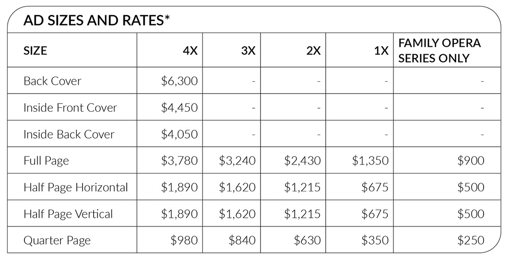Because of the size (8.375”X10.875”), design, and quality of Opera Omaha’s program books, most are not thrown away or stuffed in purses as audiences head home.