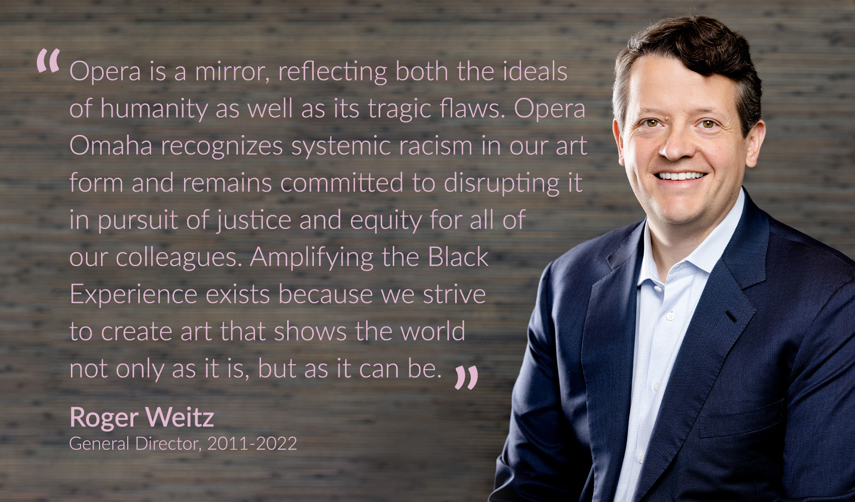 Opera Omaha's Amplifying the Black Experience series seeks to honor, celebrate, and bring awareness to the multifaceted stories of the Black community through art, music and multimedia, with an intentional focus on the community here in Omaha, Nebraska.