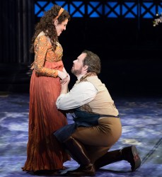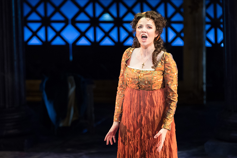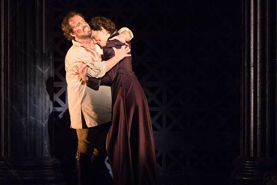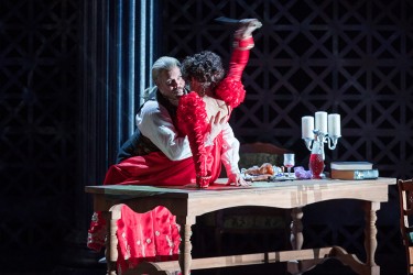 Scarpia ends Cavaradossi’s torture but refuses to release him unless Tosca agrees to give herself to him. In despair, she agrees. Scarpia instructs his henchman, Sciarrone, to arrange a mock execution, and gives Tosca written assurance of safe passage for her and Cavaradossi out of Rome. Rather than relinquishing herself, Tosca seizes Scarpia’s dinner knife and stabs him. With Scarpia dead before her, Tosca forgives him.