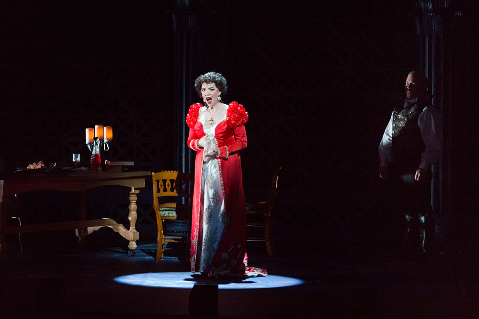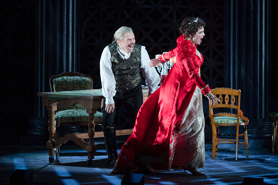 In his quarters in the Palazzo Farnese, Scarpia dines alone. After Tosca led Scarpia’s men to him, Cavaradossi was arrested. But they were unable to find Angelotti hiding in the secret passage in the well. Scarpia sends a note to Tosca, asking her to come to his apartment. Scarpia questions Cavaradossi who denies any knowledge of Angelotti. Tosca arrives just in time to see Cavaradossi taken away to be tortured. Cavaradossi tells her to reveal nothing. Scarpia describes to Tosca the unspeakable pain he will inflict on Cavaradossi if she will not tell him where Angelotti is hiding. After enduring Cavaradossi’s screams, Tosca reveals the secret hiding place in the well.