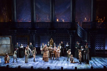 Tosca returns to the church looking for Cavaradossi but finds Scarpia and his men instead. Scarpia lays a trap for Tosca using the Attavanti fan. Offering it as proof of Cavaradossi’s unfaithfulness, Scarpia correctly suspects that after their confrontation, an enraged Tosca will lead them straight to Cavaradossi and Angelotti under his protection. Scarpia orders his men, including Spoletta, to follow Tosca. While a procession enters the church singing the Te Deum, Scarpia privately reveals his desire to possess Tosca and kill Cavaradossi.